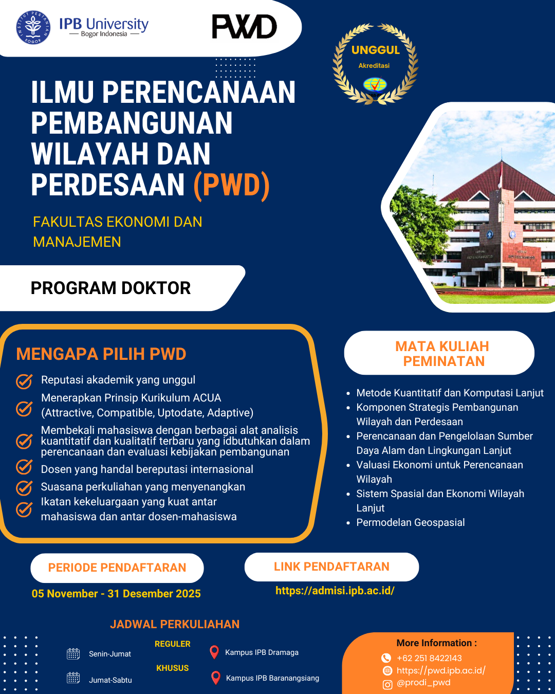 Periode pendaftaran mahasiswa baru Program Magister dan Doktor pada Semester Ganjil Tahun Akademik 2023/2024 tahap 2 dimulai pada tanggal 02 Mei-16 Juli 2023